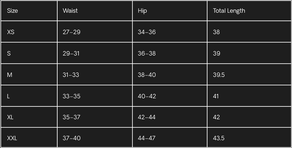 Find your second-skin fit with the perfect length. Depending on your preferred length, this chart below can help you decide which shorts fit your preference based on your size.